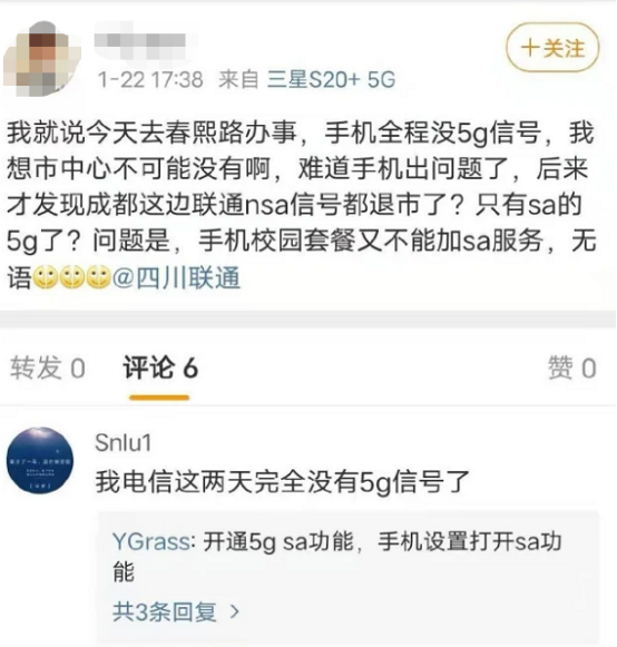 最近网上一些用户在微博晒出自己购买的5G手机无法连上5G信号,令5G NSA网络和5G SA网络孰真孰假的风波再起……