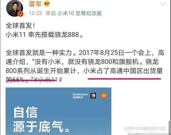 言归正传,这次被加入“黑名单”对小米来说影响还是很大的。众所周知,小米手机是高通骁龙芯片的忠实用户,每年小米旗舰手机都会搭载高通最新的骁龙芯片,而且除了处理器之外,电源管理芯片、基带芯片、WIFI芯片等等都来自于高通,可以说小米手机的芯片制造大部分被高通所承包了。而且小米最新发布的小米11,也是首个高通骁龙888处理器的手机。可以说,两家是长期以来友好合作的盟友。