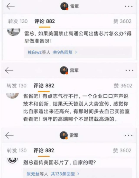 现在已经有很多网友意识到了国产芯片自主研发的重要性,在雷军的微博下面强调,那么你觉得这是“马后炮”还是“提醒”呢?
