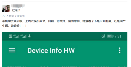 的确,当年华为的mate20 pro手机因为采用了LG屏也出现了这一质量问题,不过没有引起太大风波的原因是华为即使暂停了首批供货的生产,也果断决定对出现绿屏的华为Mate 20 Pro进行回收和换新机。